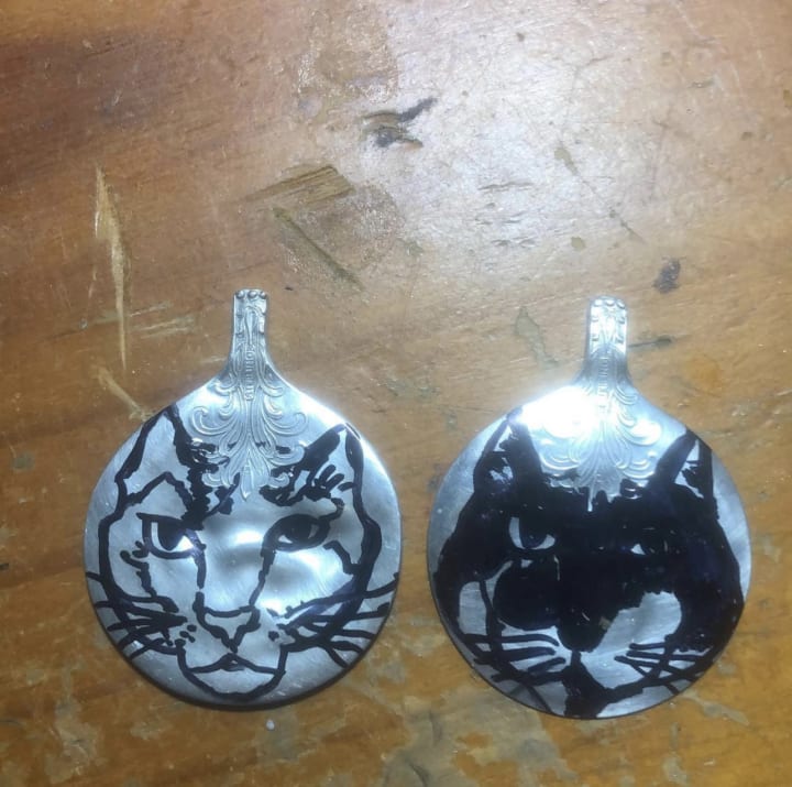 Working on these earrings… in memory of my beautiful Socks and Sophie. Now need to work out if I am engraving them on or painting on with enamel paints.