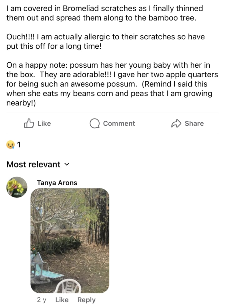 He looks aghast! "This is Housing?" I said "Yeah!" He and the woman tell me they think it looks great, the roses, the toilet outside with the plants in it, even the possum box.