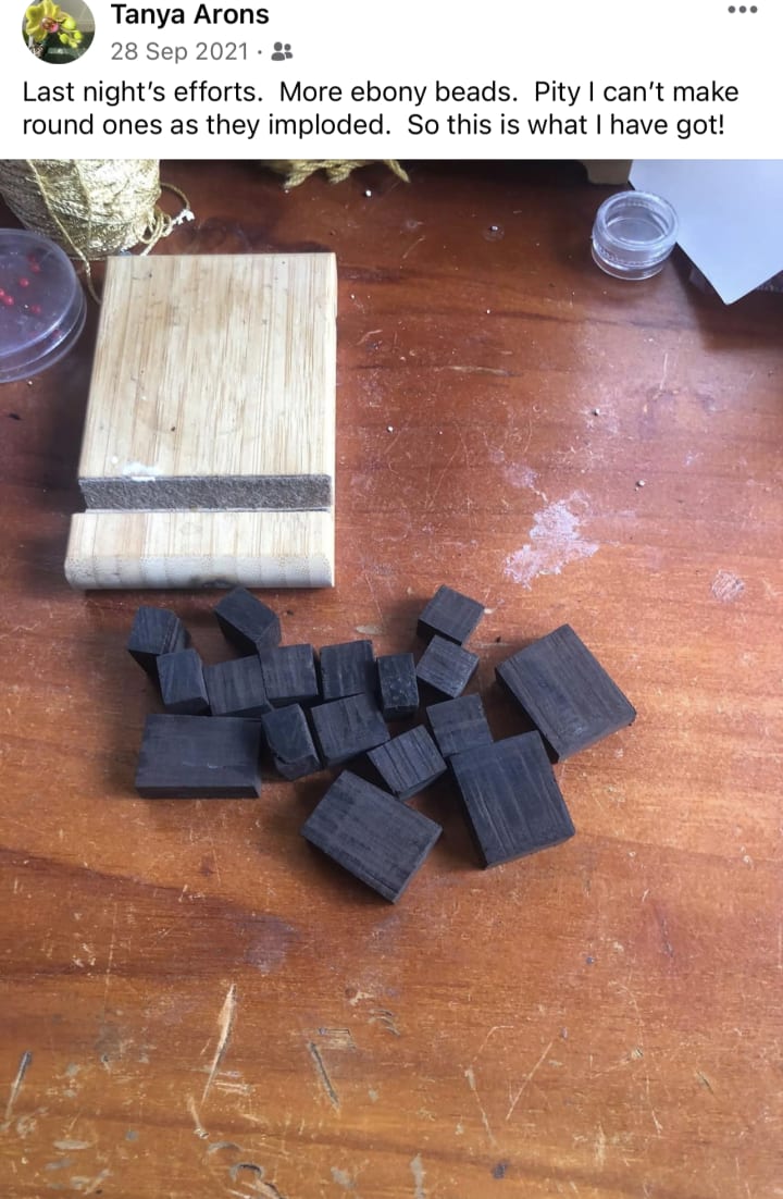 Hours of labour later. Two roundish beads and sanded back the square ones. I don’t know why I am doing this? It’s rather pointless. But better than either fomenting Revolution or suiciding I suppose. Being a nice little artist with no future has its humourous side.