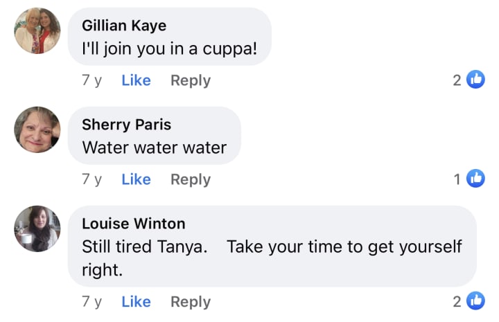 I am probably dehydrated from living my life in my former Zombie suspended animation state. So perhaps a cup of tea. I still feel tired.
