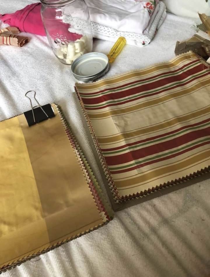 I bought this swatch of silk upholstery samples in Reverse Garbage, about 5 or 6 years ago. So my daughter always teases me about being a hoarder of art supplies and that mostly I do nothing with them. (A truth!)