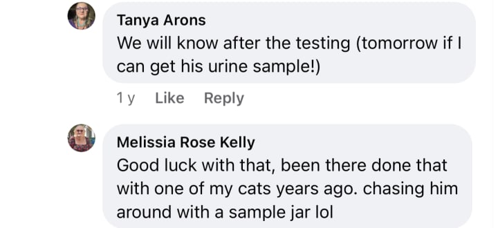 I am now waiting on Socks to do a pee so I can collect a specimen sample for the vet. He peed through an entire bag of cat litter during the night. I had to change it with fresh stuff at 3 am.