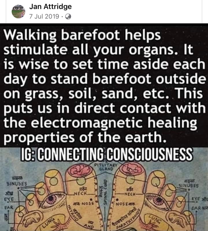 But I highly recommend walking barefoot on the earth. Feel the earth beneath your feet. Let her take the pain and shame and degradation foisted upon us by our family of origin and fucked up Society and transmute it.