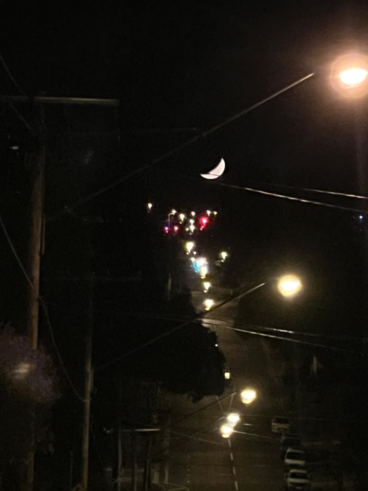 I had to pull over on Holland Road. Look at the Moon. Awesome! (2:32am 9 September 2023). I could drive right up that moon and order a cheese burger… Or something!