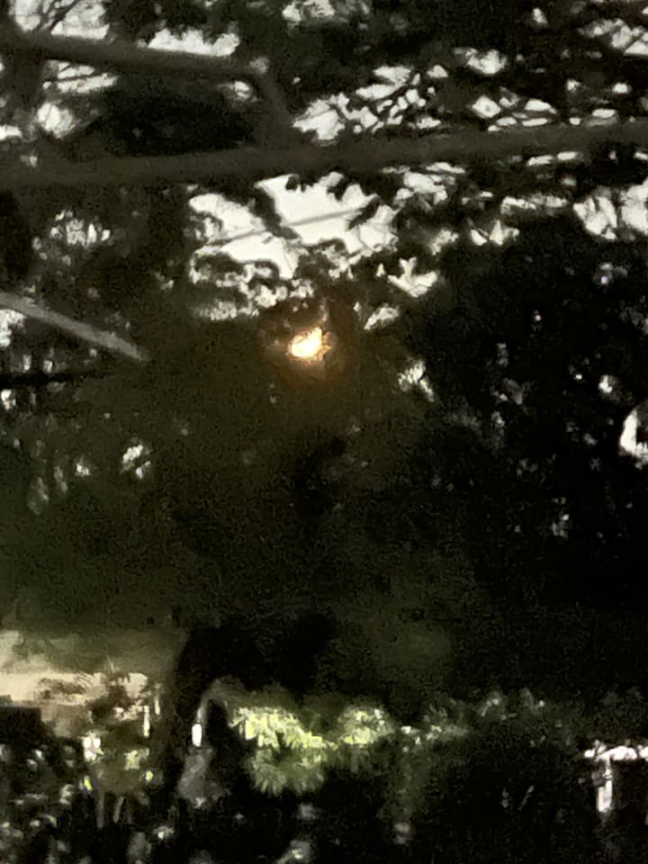 View of the moon from my backyard. (Orange looking thing in the middle!)