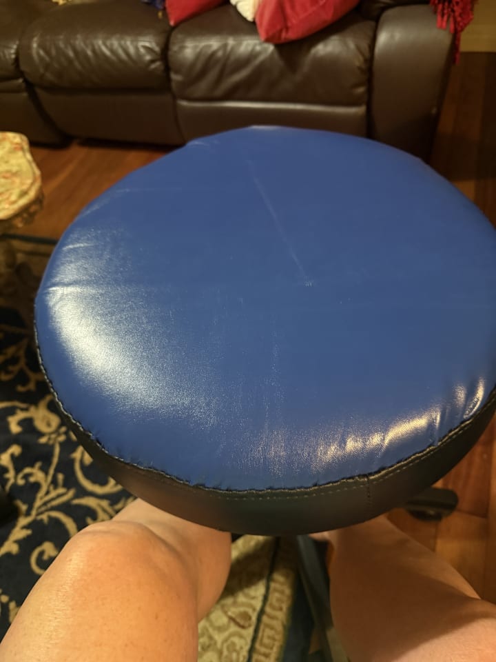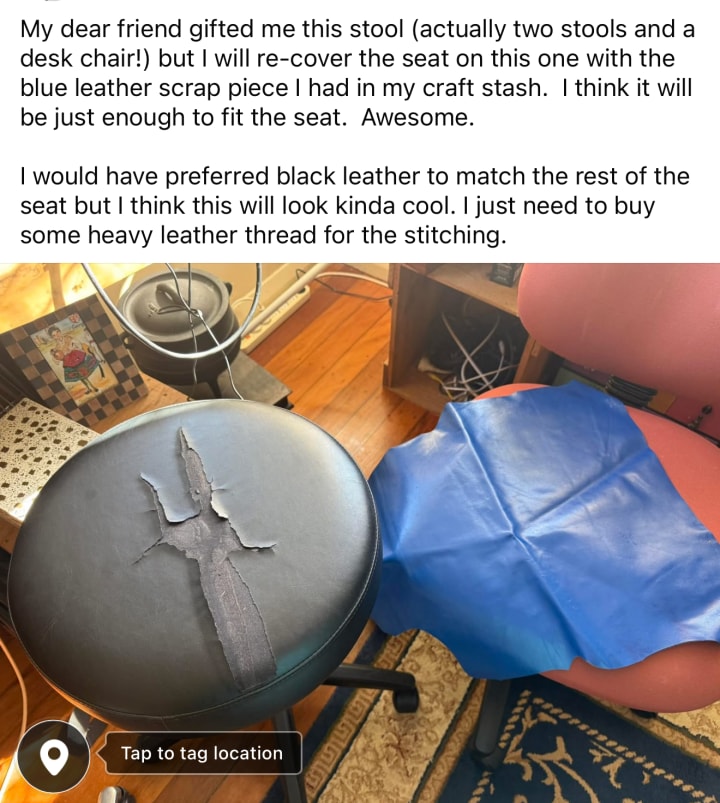 8:28 pm Done! My neck hurts from looking down and pushing and pulling with the curved upholstery needle. Lots of sweating and freaking out…but it is looking better now. Not the best job but I am still satisfied with my efforts.