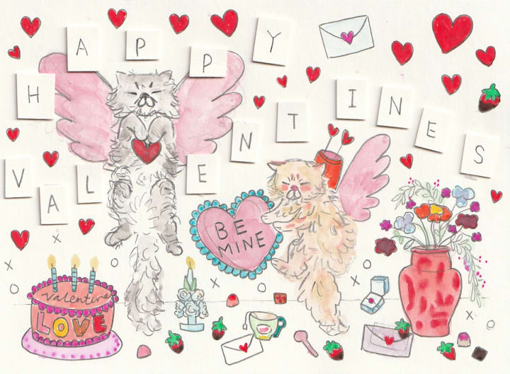 I remained bedridden and slowly watched everything fall apart. In a subconscious effort to self soothe, I found myself at my desk- picking up where I last left off creatively. The February before I had begun a Valentine's Day project. Being my favorite day of the year (and my Mother's birthday), I made an Instagram post letting all of my friends know that I was making custom Valentines. Little portraits celebrating all the things I loved about them. Their hobbies, their pets- complete with oversized hearts filled with short, personalized catchphrases mimicking the infamous seasonal candy. Anyone who wanted one just had to send me their address and I would mail it to them. The response was bigger than the year before, and I was excited to have something purposeful to busy my mind.