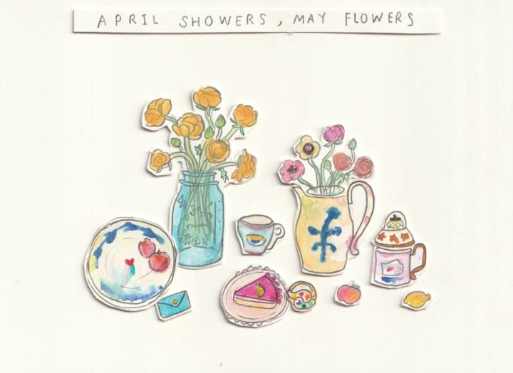 What originated as a Valentine's project quickly evolved into a pandemic project, which I eventually thought of as my "pain paintings". I would create illustrations of anything and everything. Things that I found inspiring; be it ceramics, flowers, or a whimsical table setting fit for a gathering among friends that was now explicitly forbidden. I spent as many hours at my desk as my body would allow, taking my daily therapy walks down to the post office to send them off.