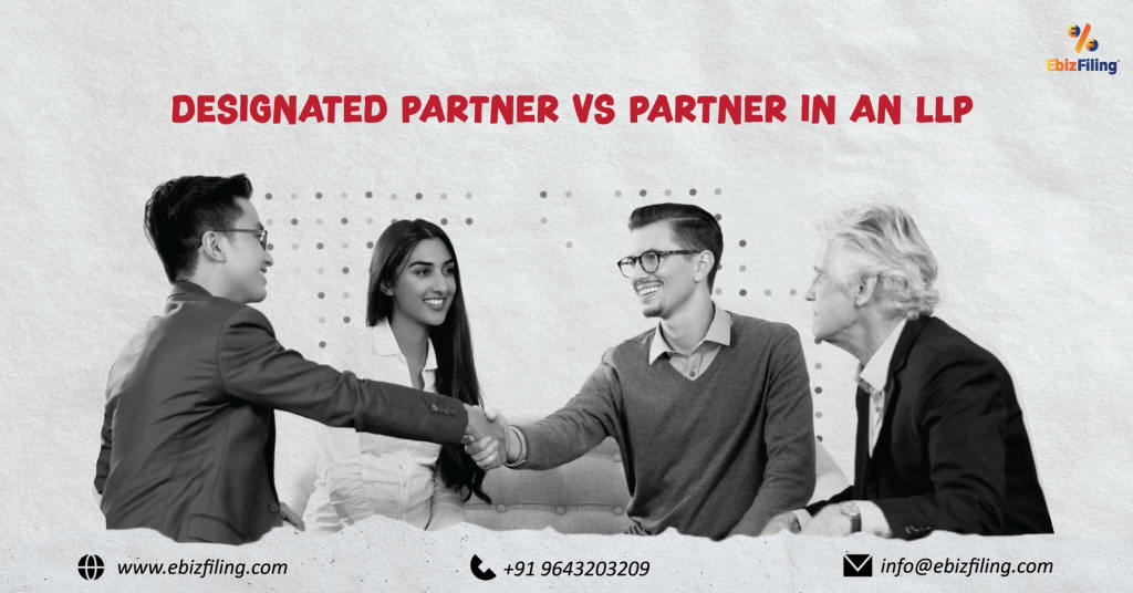 The differences between a partner and a designated partner are minor, but understanding these terms is essential when you are planning to obtain LLP company registration in India. In general, a “partner” is any individual who contributes capital to a partnership firm and agrees to split profits and losses, liabilities, and benefits. A designated partner, on the other hand, is an individual designated by the other partners to be in charge of adhering to the LLP Act’s criteria. Let’s have a clear idea on “What is the difference between a Partner and a Designated Partner in an LLP?”