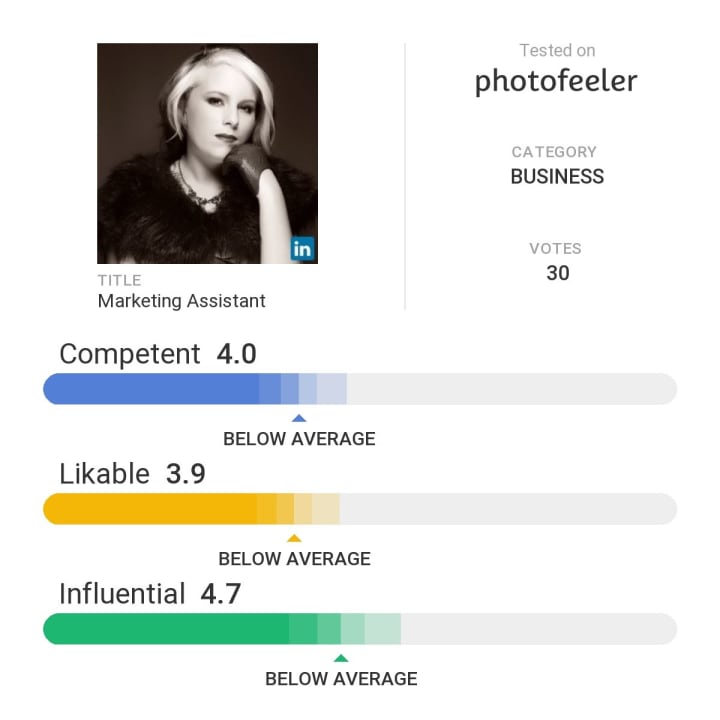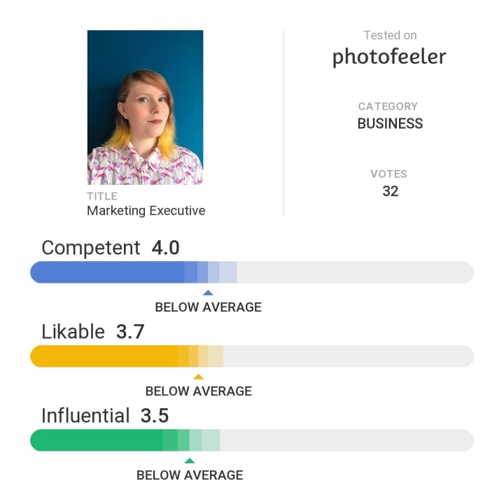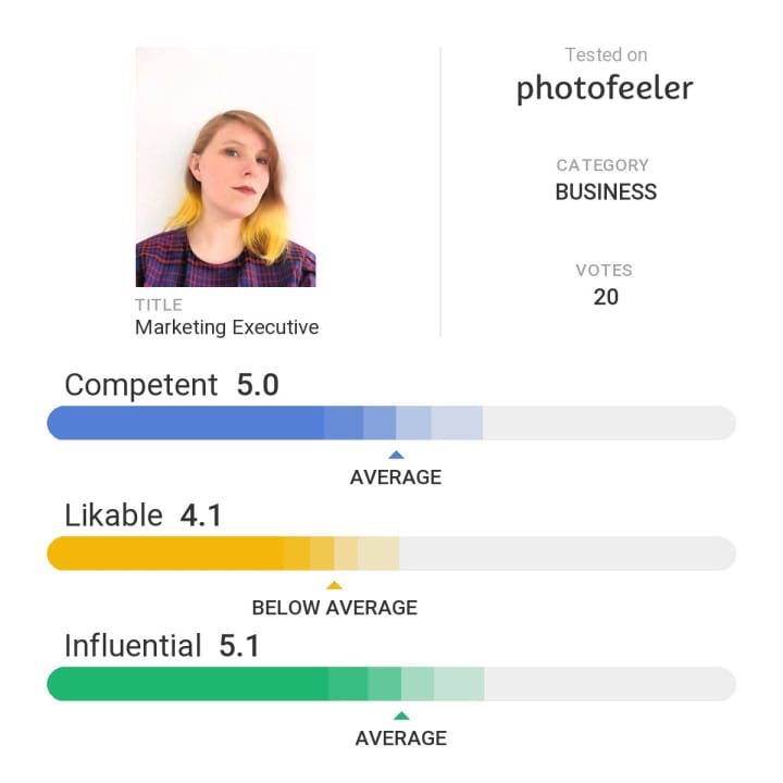 Now I had narrowed it down to five but I needed an unbiased opinion on which I should use. So I turned to photofeeler, a website which gathers strangers opinions on your Business, Social or Dating profile pictures. I had used them before to test my previous picture but didn't run any others to compare it with.