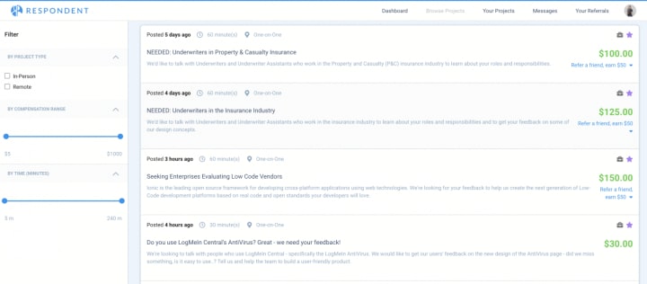 The process can be slow and discouraging if you’re not chosen to participate right away. I suggest logging in a couple of times a week to browse studies and apply for relevant projects — that way, you always have a steady stream of work in the pipeline.