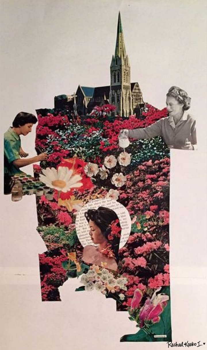 Creating magazine collages is a practice I’ve developed these recent years that I have come to deeply cherish. I love flipping through the pages of an outdated publication or a junk mail catalogue and finding singular words and images that strike me in their beauty, honesty, depth, or simplicity. Repurposing previously-used materials into something altogether its own with just a pair of scissors and a glue stick as my tools brings me repeated joy as a spectator seeing a new image take form. Piecing together unlike elements expands my sight, and enables me to envision could-be possibilities emerging from what is already in front of me. Additionally, using my hands to touch the gloss and matte of the pages and feel the weight of the varying sheets in my palms focuses my attention and strengthens my senses; while snipping away what is unnecessary similarly removes the racing thoughts of the daily tasks and to-dos that endlessly call and clamor for attention. Like a needed shearing, each trim and selection of the paper allows me to highlight and appreciate the beauty in what is already present, sharpening my concentration and cultivating an internal fulfillment and gratitude for the current moment with each cut.