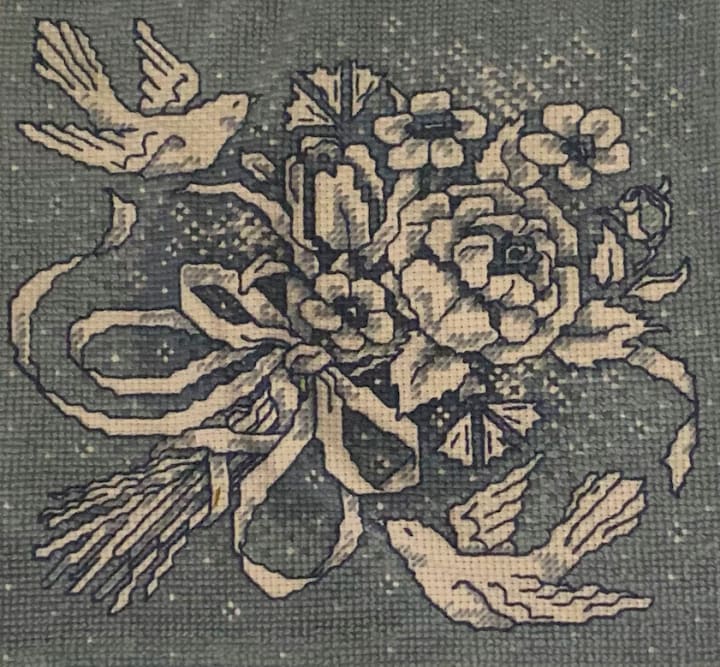 I wanted to show her how much I love her and the son I never got to meet. After flipping through the huge stack of cross-stitch magazines from the 90s that have found their way to me over the years, I found a very special pattern. It’s an Assisi-style embroidery, which is a technique where the stitches just outline the shapes, rather than filling them. It seemed especially appropriate—it was used for decoration on religious robes and altar cloths. I stitched my feelings into it—the grief I felt for her, the unimaginable pain I knew she was going through, and the love I want her to feel when she looks at it. I wove my sadness into something beautiful.