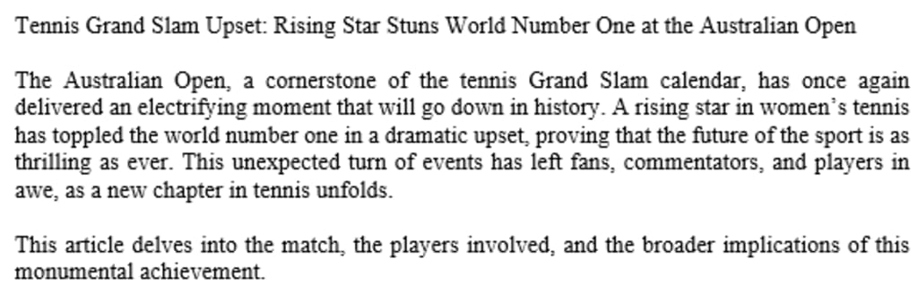 Tennis Grand Slam Upset: Rising Star Stuns World Number One at the Australian Open