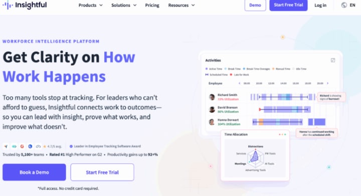 6. Insightful: Best for productivity analysis and attendance tracking in remote teams