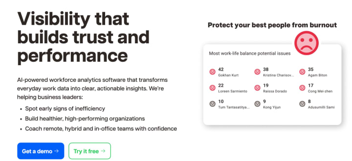 - Premium ($19 per user/month): Remote vs. in-office productivity analysis, productivity goal setting & tracking, AI-powered productivity coach.