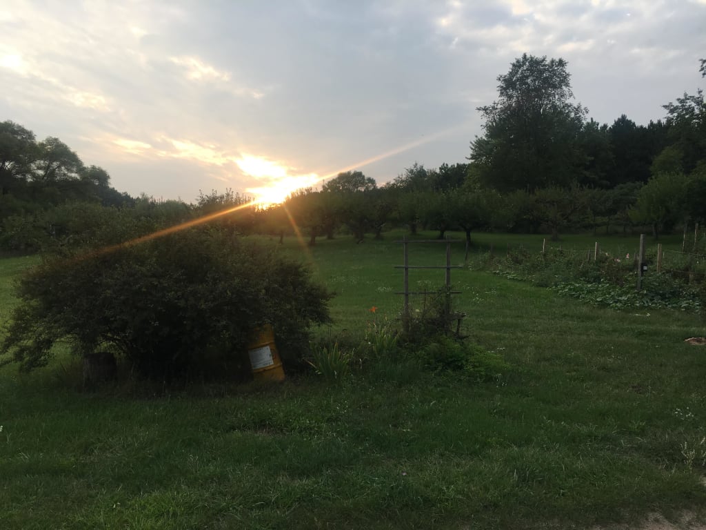 Once outside I breath in the fresh country air. Something feels different here. It always has. Perhaps it's the way the wind rustles the small leaves on the knobby apple trees in the orchard, or the sound of the birds singing and darting from the tree to tree. Maybe it's the way the pond ripples as we walk around the edge, small frogs darting from unseen perches to hide in the shadowy depths of the water. Whatever it is, this place breaths in stress and chaos and exhales peace. This place is home.