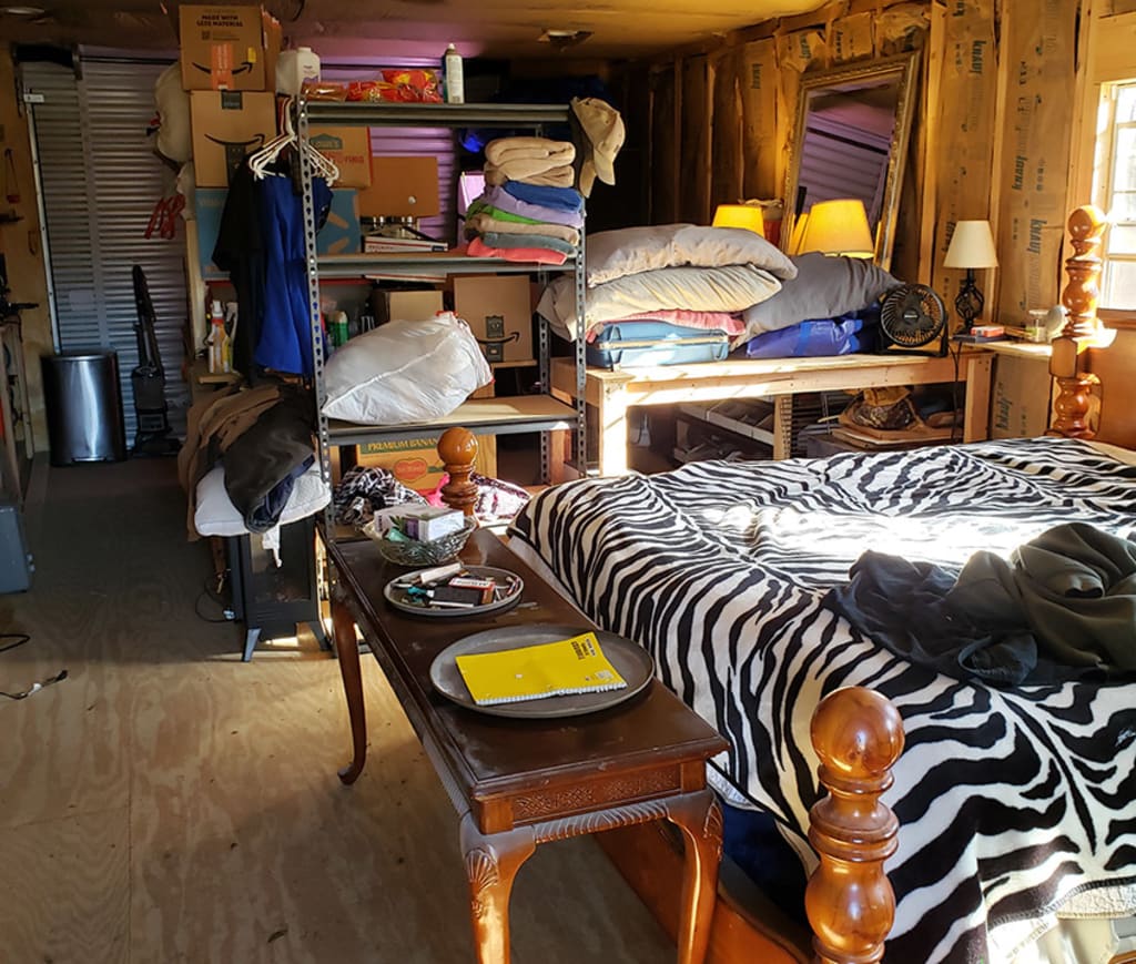We moved only what we needed with us and boxed up everything else. We had electricity but there was no indoor plumbing in the shed because it was meant to be used as workshop. I had to set up a make shift bathroom, with an outdoor shower using a camping style water heater.