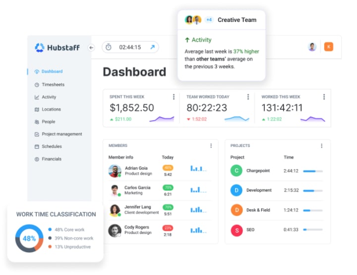 Hubstaff’s workforce management software for staffing and recruiting teams is a standout among time tracking solutions, offering a comprehensive suite of features. With automated, accurate time tracking, Hubstaff lets you save significant admin effort and reduce errors in the billing process.