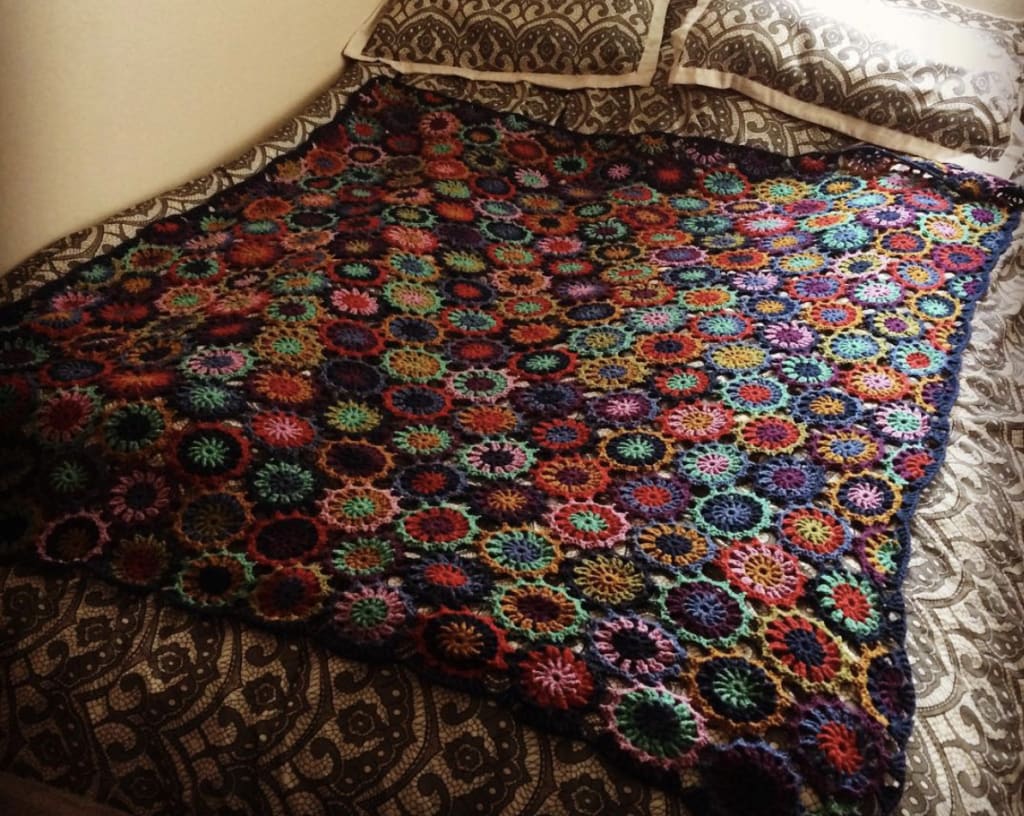 My mom, unlike me, is great a knitting, sewing, needling (some Medieval technique!), and crocheting, and she crocheted me the most beautiful blanket for my bed (queen-size!). It is absolutely stunning. -And possibly one of the most expensive blankets ever. Some years ago, she came to visit, and I had to pick her up in Los Angeles and then drive her straight out to Sedona, Arizona, where she said they didn’t have yarn stores. So, my job was to pick up some yarn for her to bring to make me a blanket! The day came when she would arrive, and I had yet to find a store that sells yarn. I drove into LA and searched google.maps: the first store was not a store but some residential area. Ok, onwards to the next on the list - in Beverly Hills. Here I found a nice little yarn store. People were super friendly, and I explained what I needed: I chose the yarn (merino wool), the colors and was advised how many skeins I needed to make a nice large blanket: $180! All set, and off I went to the airport. My mom was happy that I had gotten some yarn for her. BUT! Two things: The yarn was super tricky to work with, and second, I had not nearly bought enough. When she returned to LA, we had to stop by the store again and buy twice as much! Sigh...