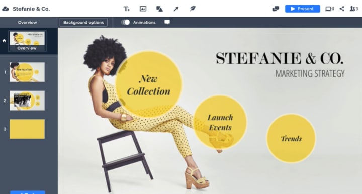 A “quick fix” presentation software that is a perfect fit for creating a slide deck from scratch in less than 30 minutes thanks to its user-friendly interface.