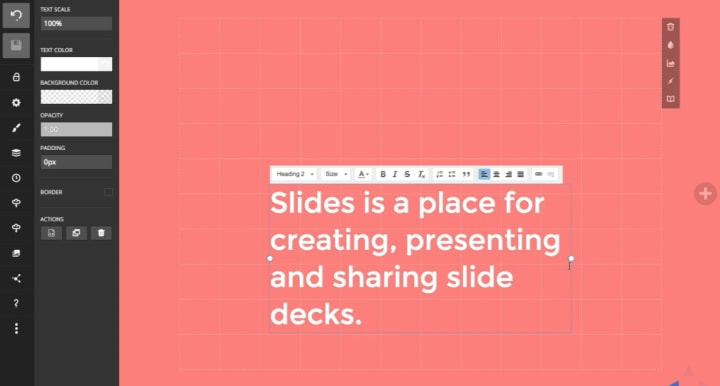 A free service for online slide design with a built-in photo editor. Allows creating presentations directly in a web browser and works for various design concepts.