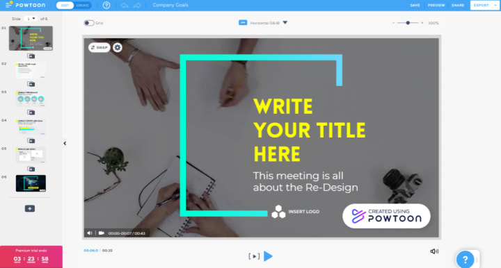 - a non-removable watermark on the slides if using the free version