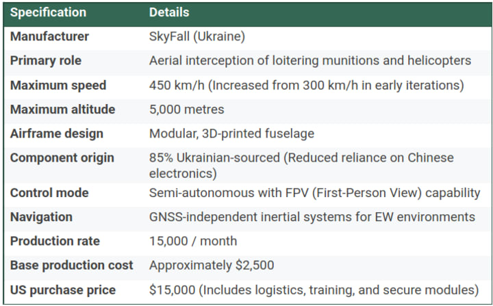 The P1SUN is a specialised interceptor drone developed by the Ukrainian firm SkyFall. Unlike traditional reconnaissance or strike platforms, the P1SUN is engineered specifically for the pursuit and kinetic destruction of other unmanned systems.