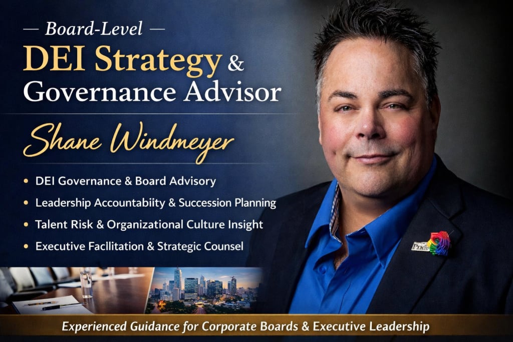 Shane Windmeyer is a North Carolina–based DEI strategist, speaker, and advisor who helps organizations build inclusive cultures grounded in trust, fairness, and measurable outcomes.