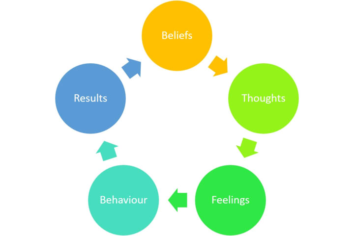 Research has found that up to 95% of all of our actions throughout the day are subconscious.[2]. That is astounding! We are completely unaware of what is coming into play in our decision-making process. We like to think it all logical and reasonable and mechanical, but what we see occurring is just the tip of the iceberg of our thought and behavioural processes. Moreover, it is our emotions that are the direct mediator between our thoughts and our actions. How emotions are the driver of behaviour is made clear in the model of cognitive behaviour shown below.