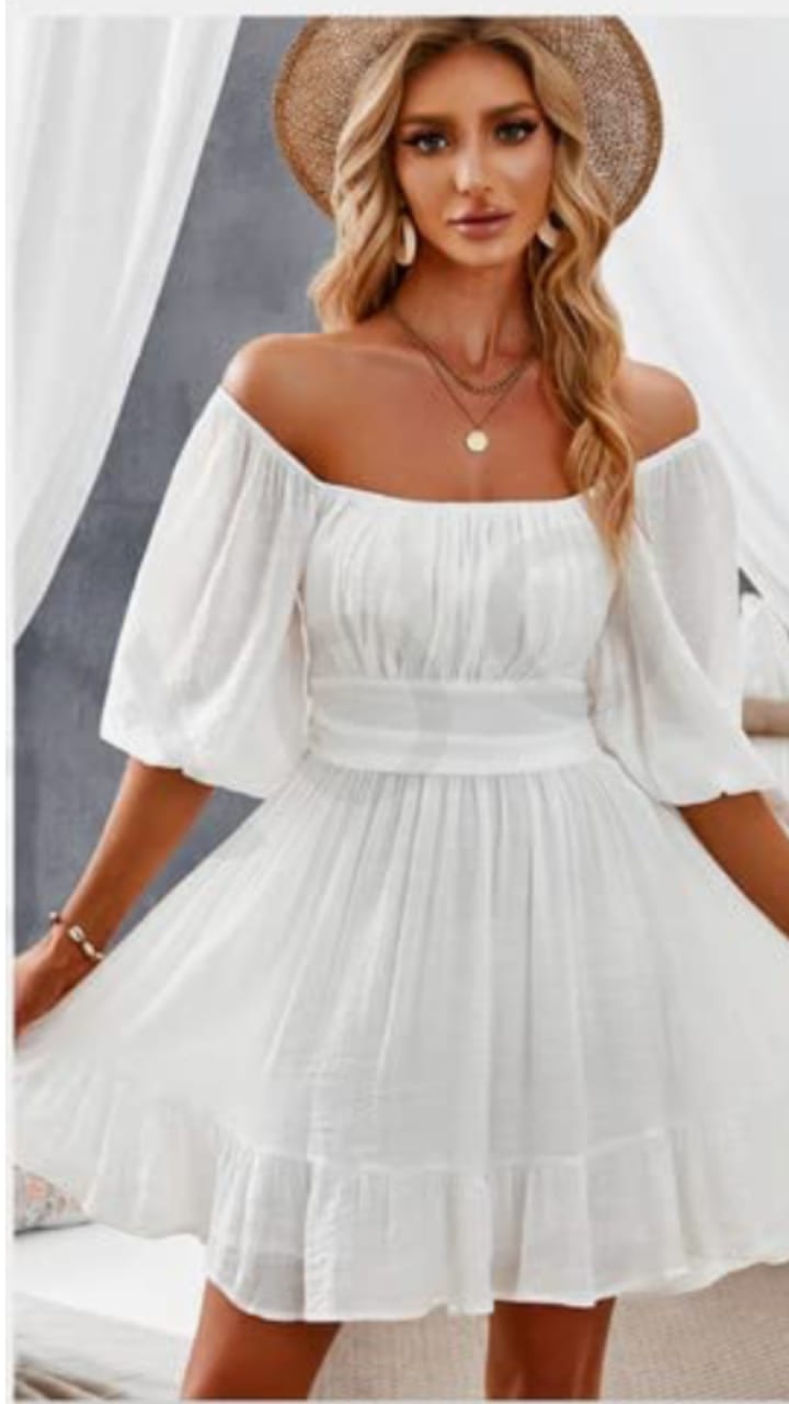 The off-shoulder dress is a chic and feminine option for a boho wedding, providing a flirty and playful look. This particular dress is made from 100% polyester fabric, which is soft, lightweight, and breathable, making it perfect for a warm wedding day. The dress has a tie closure, which adds to its bohemian charm. It comes in different colors and sizes, allowing the bride to choose the perfect fit for her body type and style. The off-shoulder design is flattering, accentuating the collarbone and shoulders while remaining comfortable to wear. This dress is versatile and can pair well with over knee socks and canvas shoes for a laid-back, boho look. It is suitable for all kinds of occasions, including weddings, parties, and other special events. The soft and comfortable fabric of this dress ensures that the bride will feel at ease and confident throughout her wedding day. In summary, the off-shoulder dress is a stylish and affordable option for a boho wedding, providing both comfort and fashion for the bride.