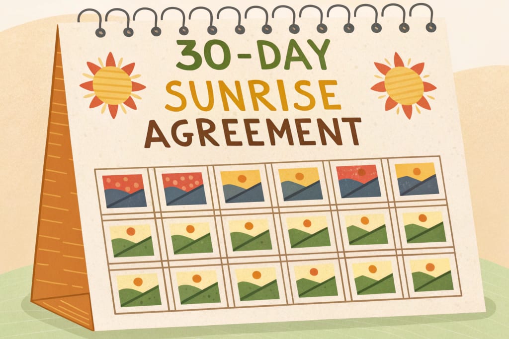 When Maya turned 30, she didn't expect a gift from her younger brother to change her life. "Open It," Jay smirked and handed her a slim, dark blue envelope. "The Sunrise PACT-A 30 Day