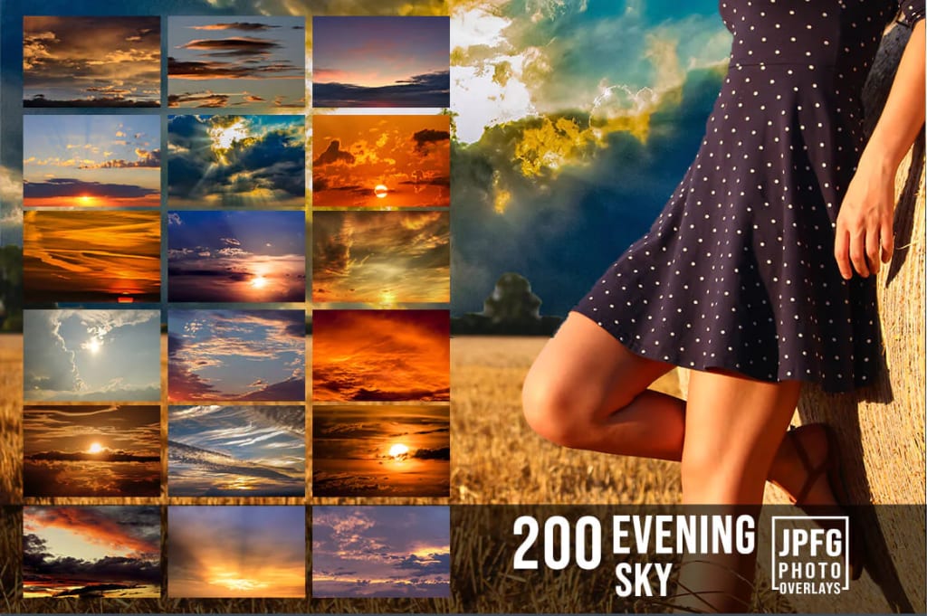 If you want to create a dreamy scene, you can create a sky background with the Sky Overlay Photoshop Bundle. With the sky overlays Photoshop bundle, you can add clouds, birds, planes, helicopters, cars, clouds, stars, moons, planets, water, snow, waves, sunsets, sunrises, or fireflies into your photo. You can use it to add effects and create a dreamy feel.