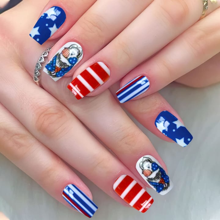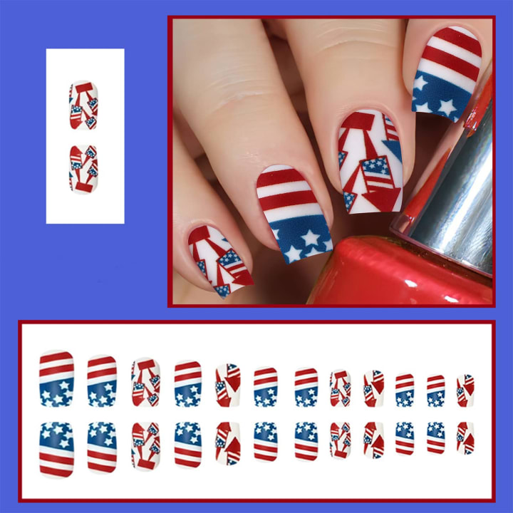 These nails are a reflection of the diversity and excitement found in the USA. Embrace the classic American colors and adorn your nails with stars, blocks, florals, and even animal prints. Let your nails be the main character and show off your patriotic spirit.