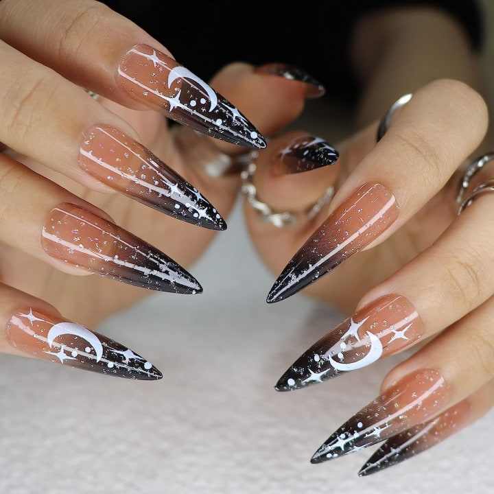 Stiletto nails offer the perfect canvas for both minimalism and intricate detailing. Combine creamy whites with vibrant colors that fade into one another for a soft and stunning finish. These nails are a perfect complement to any outfit choice and are guaranteed to shine in photos.