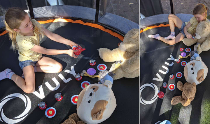 Our little girl adored snuggling up in a cover with her number one soft toys in the trampoline. She had all the delight of being outside around evening time with no of the bothersome grass or bugs. We let her stay up later than expected and did her storytime on the trampoline. Normally, she presently hauls her soft toys out there during the day to run her own storytime activity.