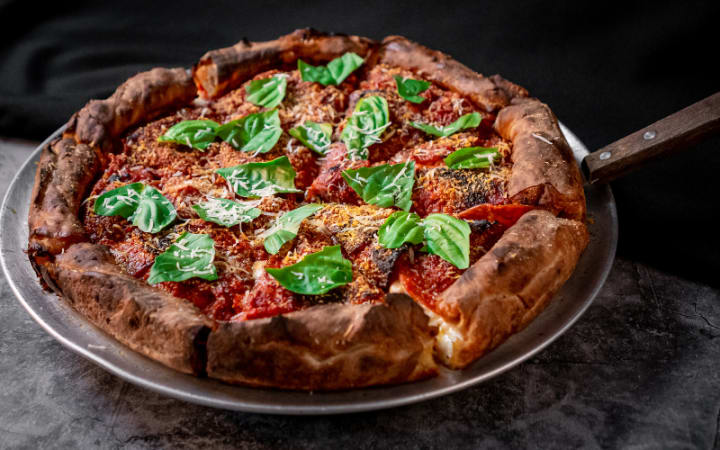 Chicago-style pizza is a deep-dish pizza that is more like a savory pie than a traditional pizza. The pizza is layered with cheese, toppings, and tomato sauce in a specific order and then baked in a deep dish pan for a long time, resulting in a thick and hearty pizza that is often eaten with a knife and fork. The crust is buttery and flaky, and the toppings are piled high. The classic Chicago-style toppings include sausage, onions, and green peppers.