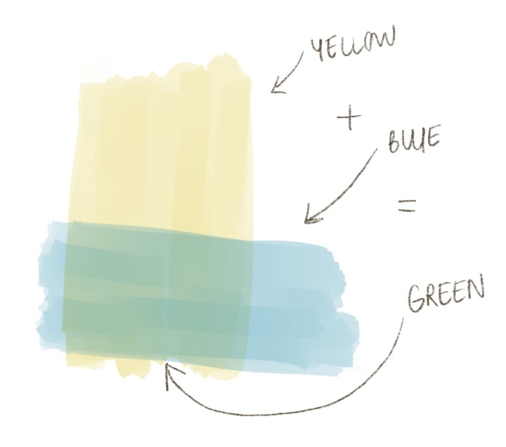 Another way to blend is to lay colours over each other entirely to create new colours.
