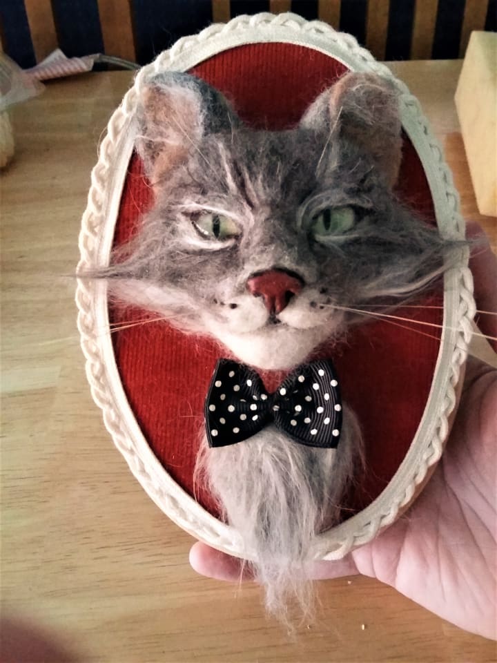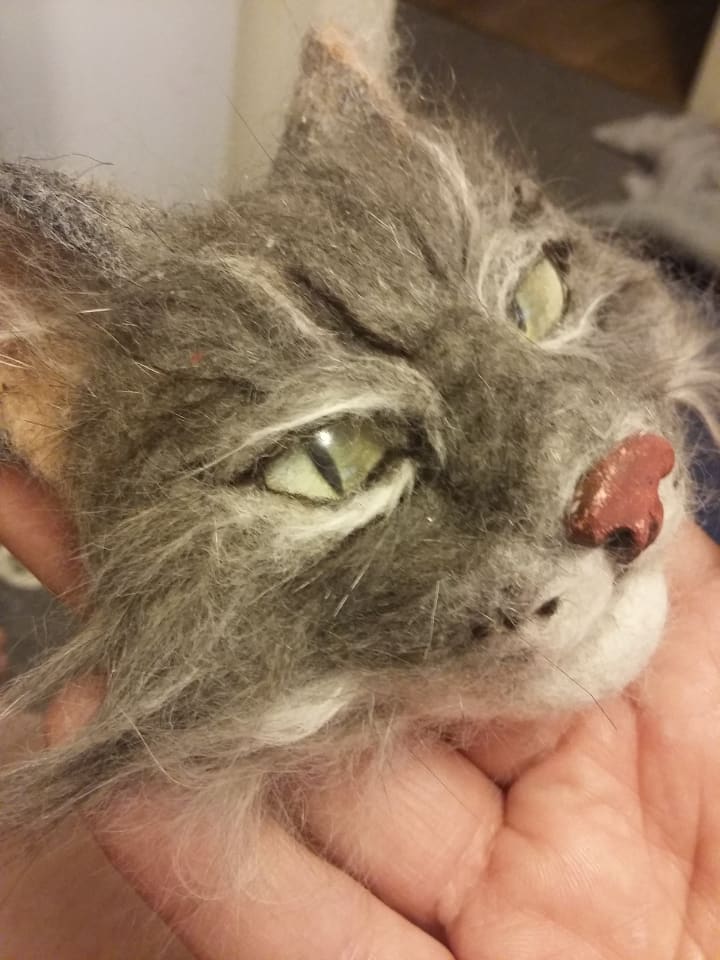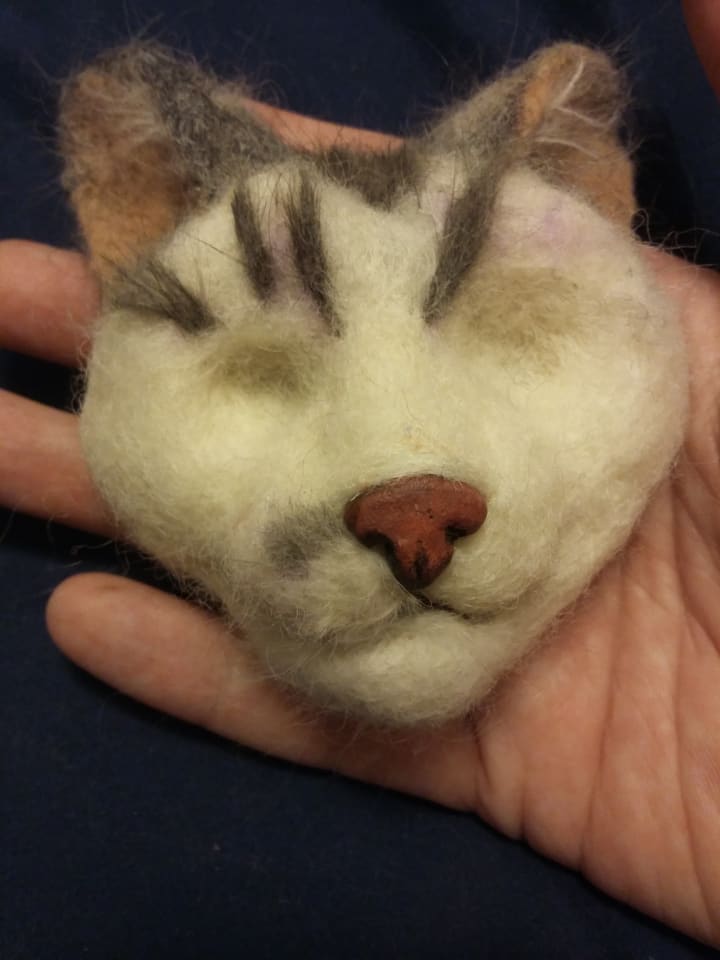 I had seen a video of an artist who makes cat sculptures and wondered if I could do it, so I set out to make my own needle felted version of my own cat.