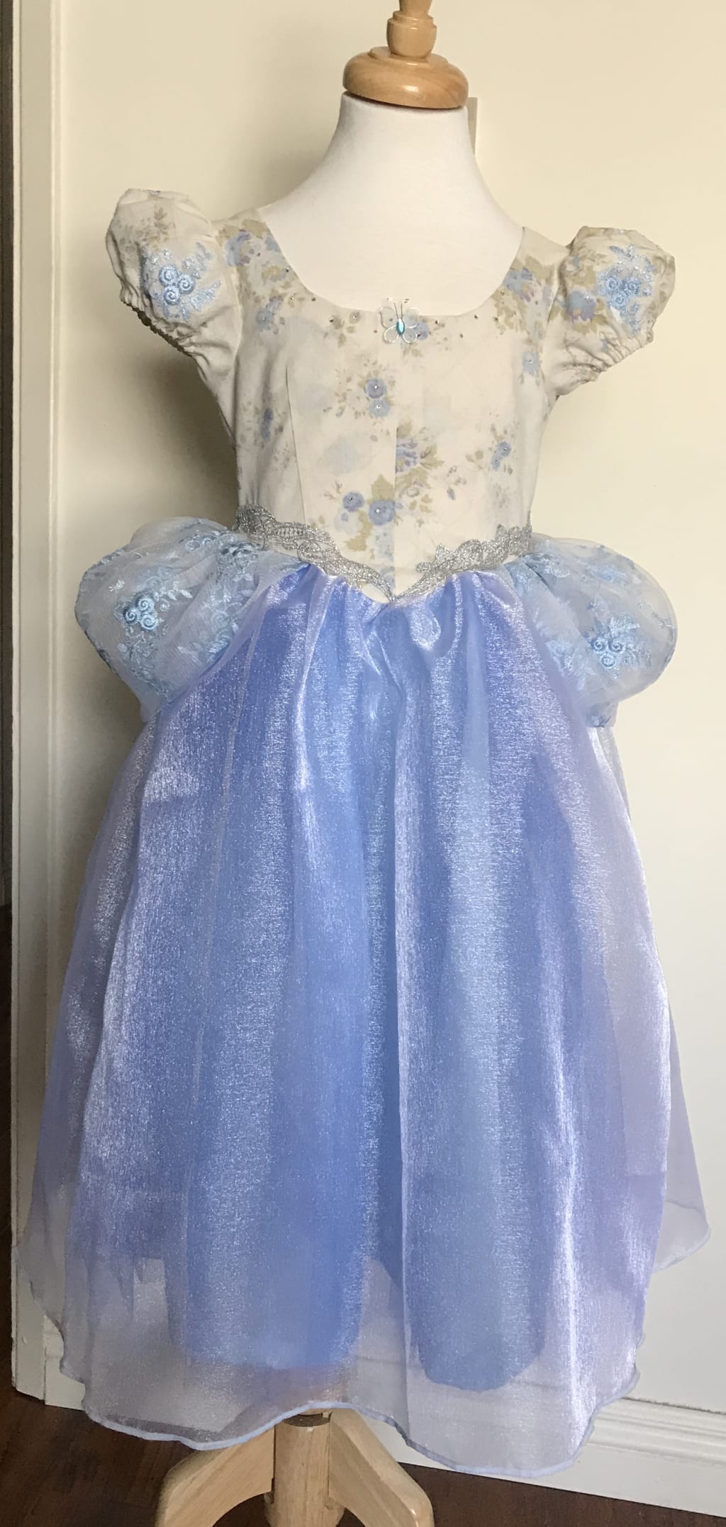 Sometime during this past year of craziness, I decided to dive into my fabric and crafting stash to create a costume dress for my niece. I sew regularly but I felt like I was making the same type of things over and over and began to feel like I was stuck in a bit of a rut during quarantine. I wanted the distraction and joy that comes with creating just for the sake of creating. My niece, Evie, is three years old and obsessed with princesses. When I started to make her this dress, she was in a Cinderella phase and watching the movie on repeat. She would even act out certain scenes along with the film. So crafting her a Cinderella princess dress just seemed like the obvious choice to me. Plus, dresses are my absolute favorite thing to make. There are so many styles and eras to draw inspiration from when sewing a dress. I love combining old patterns with my own patterns to create one-of-a-kind unique fashions, and if I can gift the end result to someone I love, then that is even better.