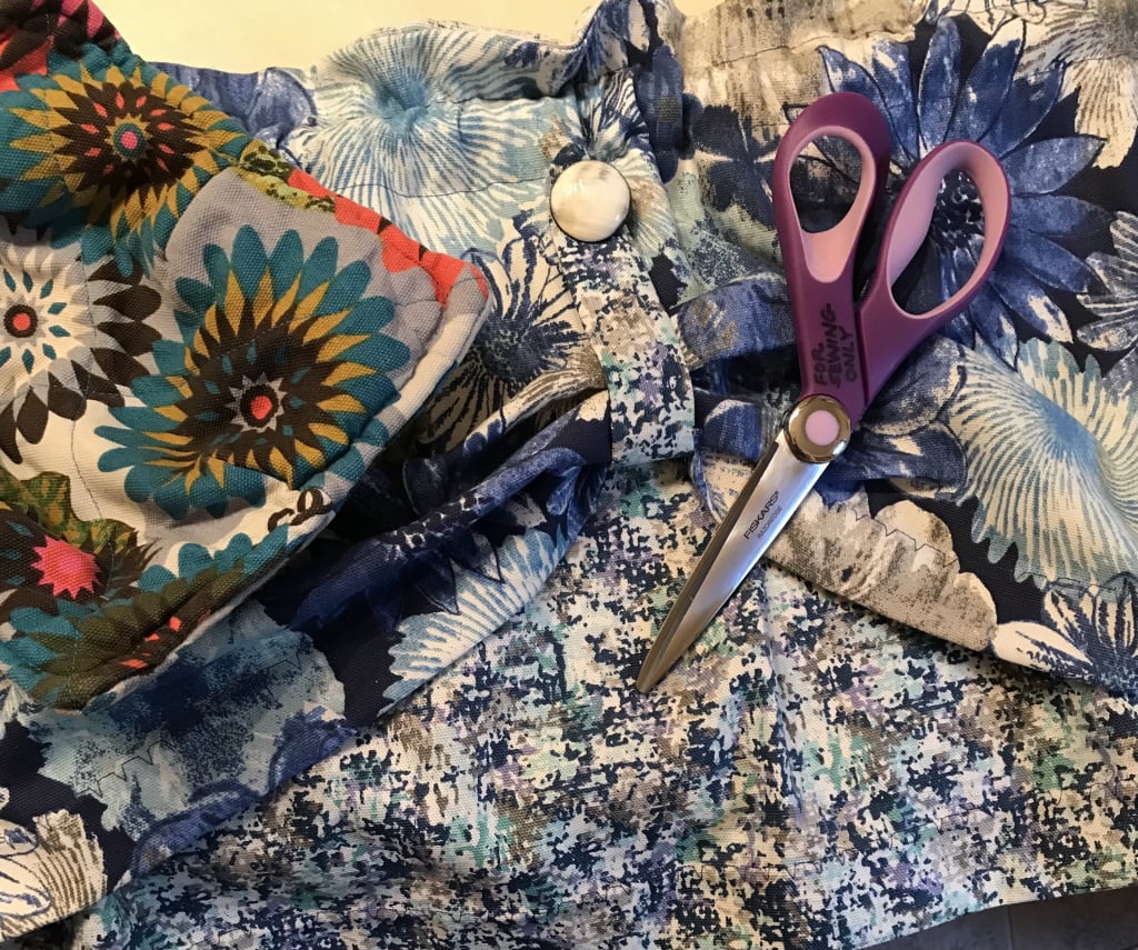 Until COVID19 that is. Suddenly, there I was--recently retired, stuck at home, and it occurred to me--I could sew masks. I knew there was fabric in a box in the basement I could put to good use. But, where were my "for sewing only" scissors? No clue. I searched high and low and came up empty handed. So, I made do with some very old, used for paper scissors. There was no pleasure in the nice clean cut, that special sound of fibers succumbing to the sharp blades of my "for sewing only" scissors. I couldn't stand it! I put on one of the clumsily cut masks and headed over to our local Joann Fabrics the first day it was opened to the public again, and I bought my new purple-handled "for sewing only" Fiskars scissors. I loaded up on pretty home decor fabrics and headed home.