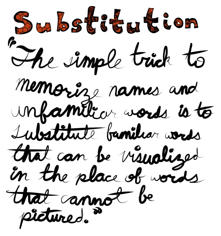 "The simple trick to memorize names and unfamiliar words is to substitute familiar words that can be visualized in the place of words that cannot be pictured"