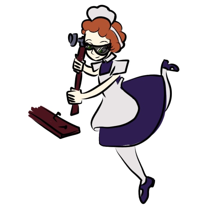 4. Four is "neljä", which sounds a lot like "nail". Therefore, it's easy to visualize the "cool maid" hammering nails.