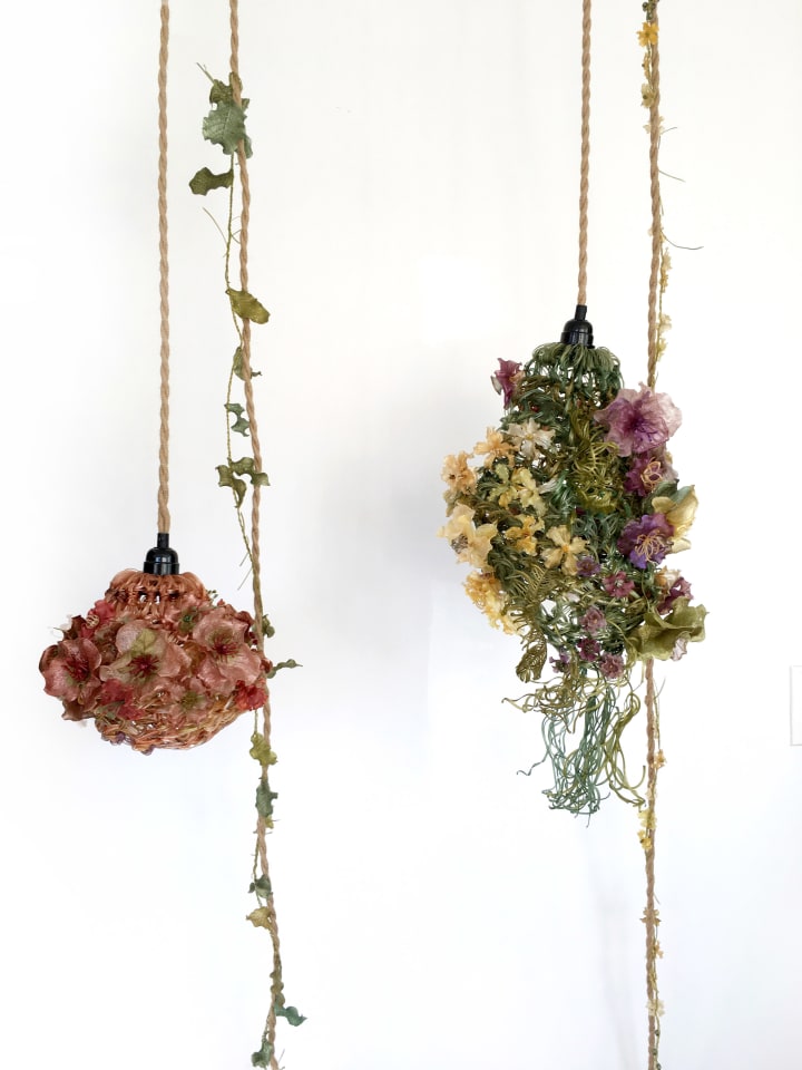 I have made a handful of unique agar floral lamps so far, and majority of them were completed during 2020, when I spent most of time quarantining alone in my apartment. To recall back in April, 2020 when I made this set of lamp titled “Dwelling In The Wild'' for my living room, it accidentally became a mental sanctuary during the pandemic, and it was a comforting substitute for the in person visit to the flourishing spring, which was so unapproachable back then. By continuously making using this creative craft form as my emotional outlet and a way of staying calm and connected during the uncertainty, I filled all the blank space with happiness brought by this spirited material, agar.