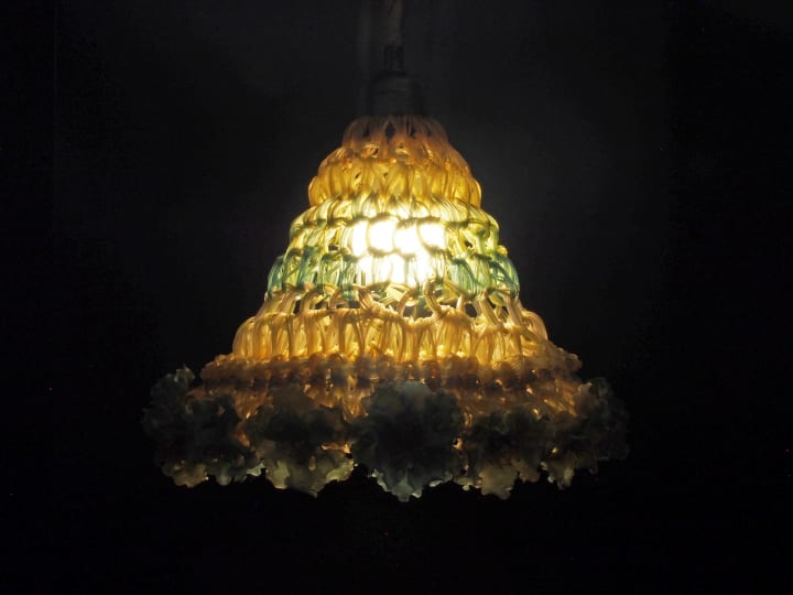 By delving deeply into material research involving agar and the upcycling of waste materials, I innovated a flower making system for interior and fashion embellishing. My ultimate wish is that eventually we will reconsider the overuse of petroleum in favor of this type of flower-making system inspired by a natural material, agar. I further applied agar flowers in making biodegradable floral illumination. The translucent agar flowers gently illuminate any space in which they’re placed. In this way, decorative beauty comes both in the form of the flowers themselves as well as through how they disperse light.