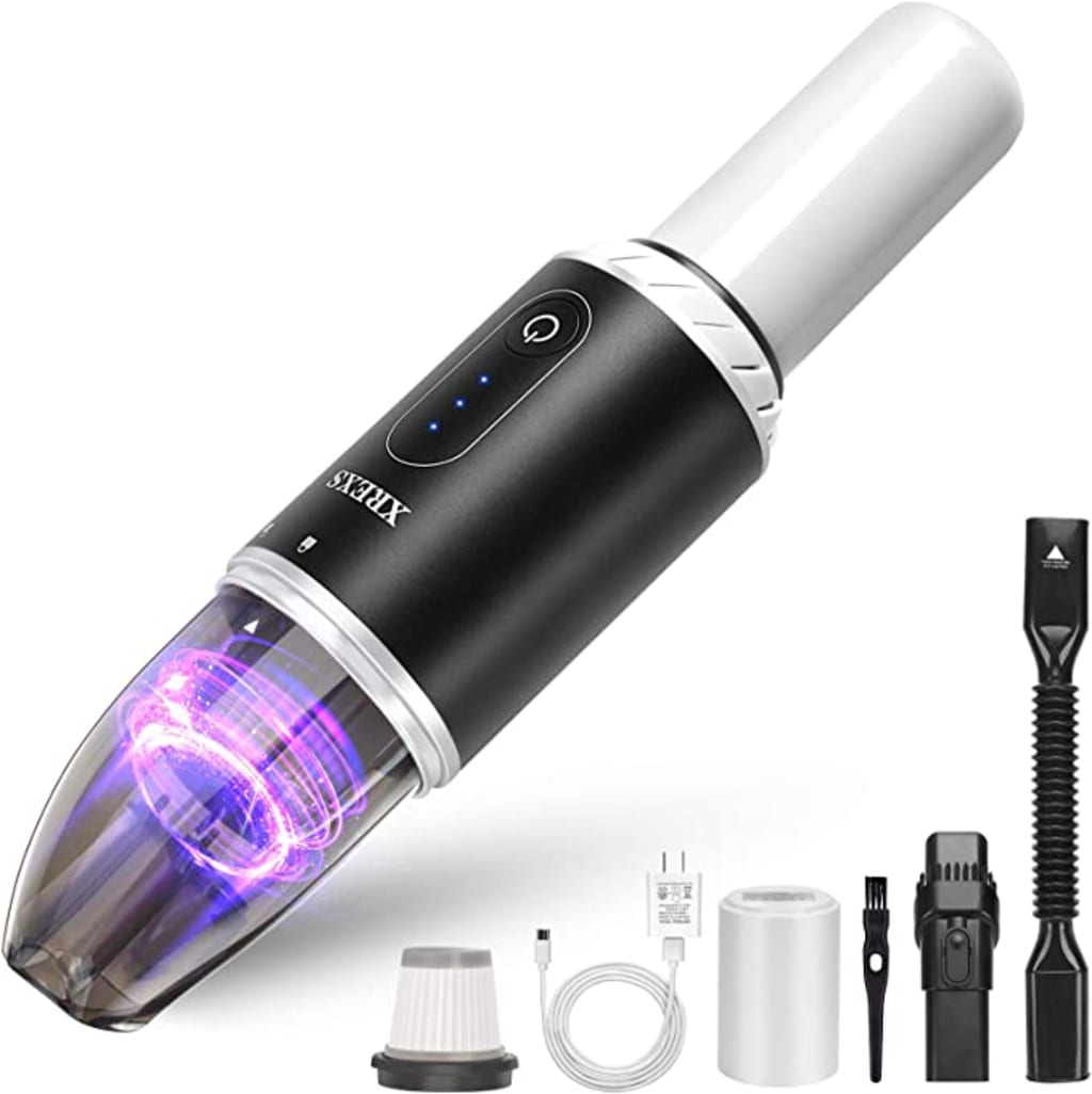 XREXS Handheld cordless vacuum equipped with ultra-high powerful motor with suction up to 8000pa provides efficient vacuuming ability to deep clean for your house and car.