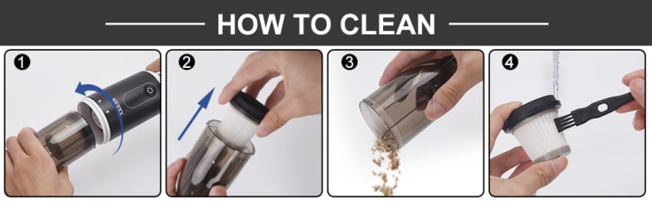 The washable filter can be detachable, it can be reused after cleaning, and maintain the same suction power. The filter should be clean and dry after each use to enhance the powerful suction for the next use.