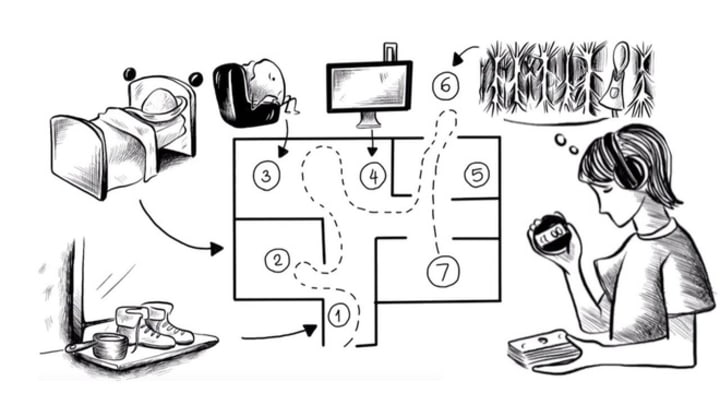 The method of loci requires you to use your own imagination, creating a 'story' and linking each item together to form a narrative.