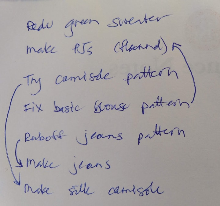 The fun part to all this is that subtasking can help you make better progress on hobbies, too (even chores!). Take my sewing wishlist. When I only jot a basic list of projects, I can quickly get discouraged.