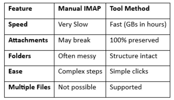 When I first tried the manual IMAP sync method, I gave up halfway. Folders weren’t syncing correctly, and I lost patience after waiting 3 hours for just a few hundred emails.